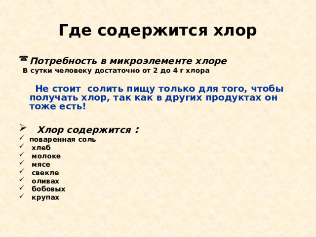 - Влияние уровня хлора на здоровье человека